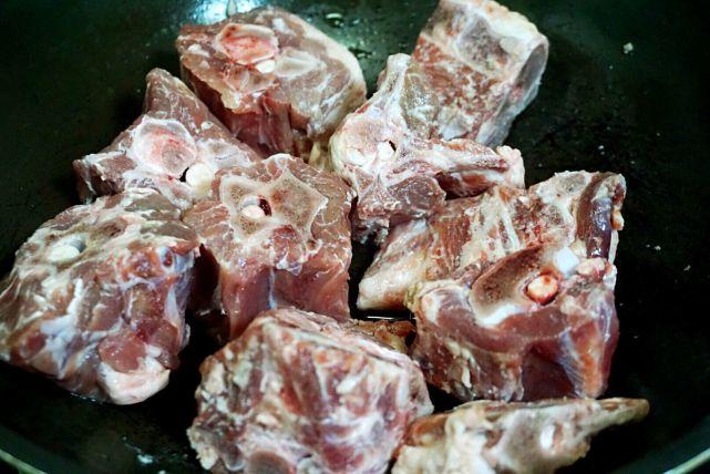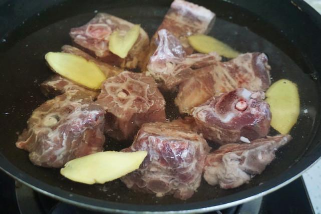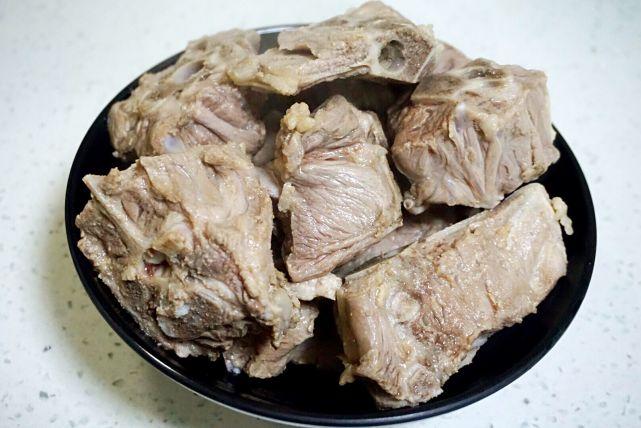 1、羊蝎子买来浸泡清洗后,先要焯水,去掉血水。清水里放入蝎子肉,清水的量没过肉块为宜。