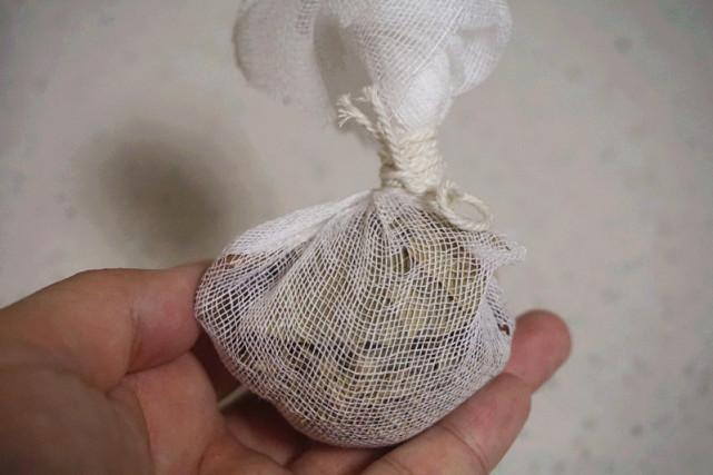 3、一般做羊蝎子用到的香料如下,有丁香的可以放入2-3颗。用纱布包裹起来作为调味包,这样炖煮的时候香料不散,吃的时候就省心了。