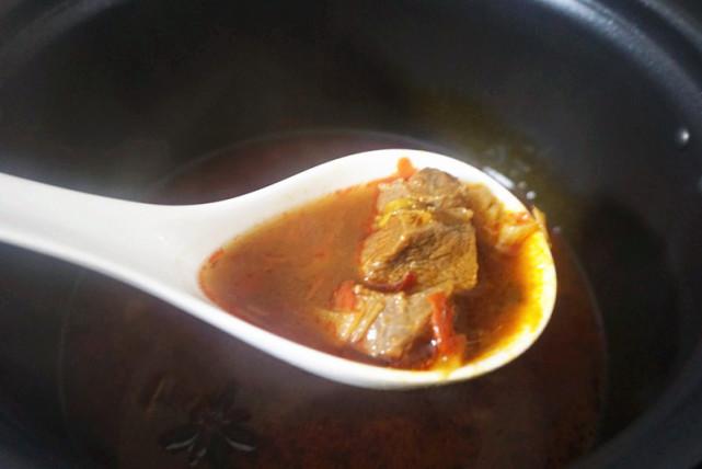 放入抹过牛肉的开水,煮沸后关火,倒入高压锅中。这种做法不仅省事,而且能够保持煮熟的过程中水分不会蒸发掉,毕竟吃牛肉面,这搭配的一大勺牛肉汤汁是不可少的。所以还真是要用高压锅才行。