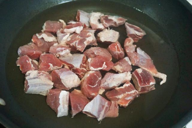 牛腩肉冷水入锅,烧开后捞出,以去掉血沫。