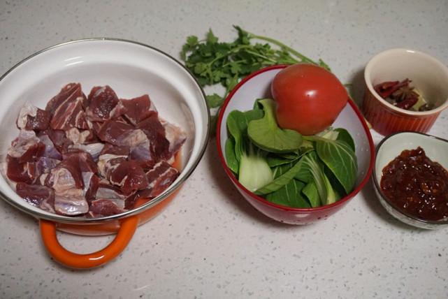 牛腩肉:800克;郫县豆瓣酱:4大勺;番茄:1个