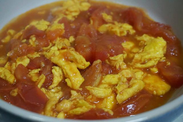 锅内放少许油,下番茄块,翻炒出汤汁后加入适量糖和盐,番茄变软倒入鸡蛋,十秒左右出锅。