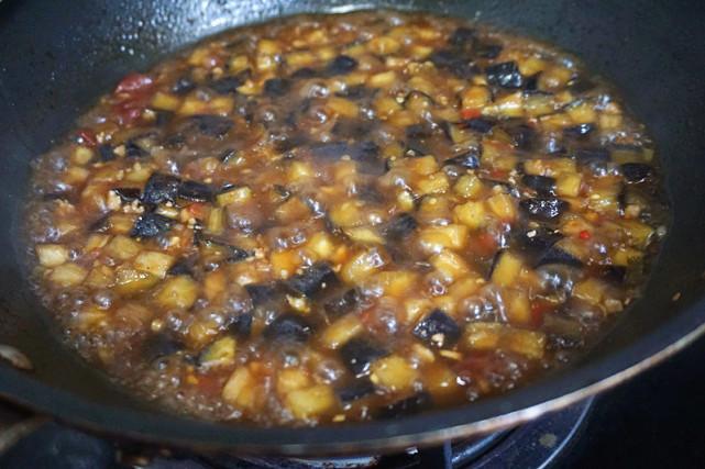 做好的茄丁卤,看着就诱人,由于放了剁辣椒和蒜末,吃起来开胃又过瘾。