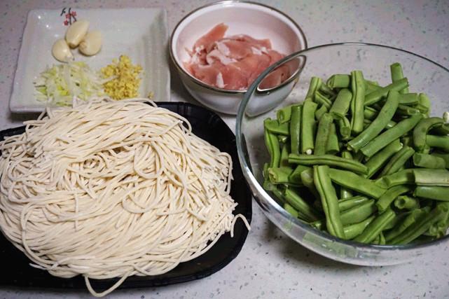1、准备好需要的食材。豆角的量可以和面条的量一样,我是爱吃豆角,所以放的豆角会多一些。放入的肉片,五花肉比较好,肥瘦相间的好吃。