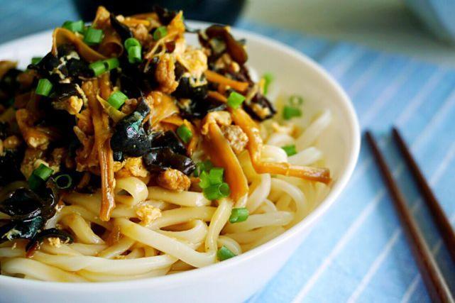用黄花菜做的打卤面,是北京人最常吃的卤汁之一,口感细腻鲜美,带着浓郁的汤汁,吃完后胃觉得暖暖的。