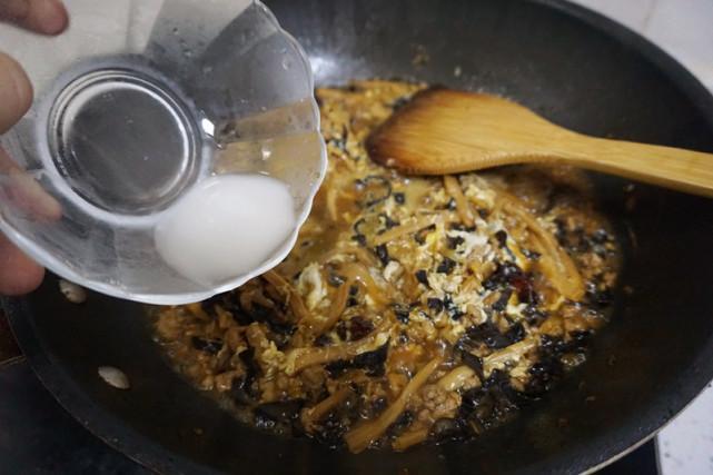 接着倒入肉沫,炒匀。由于剁辣椒也有咸味,所以就不要放盐了,放1勺的糖很必要。