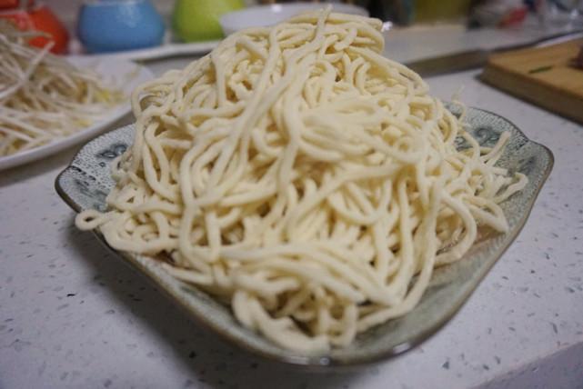 4、炒个十分钟左右就可以了,准备些绿豆芽、黄瓜丝、胡萝卜丝等菜码。
