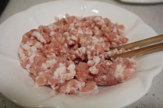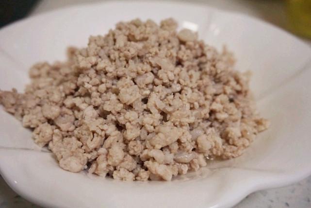 2、坐热油锅,放食用油,油烧到五成热,放入肉馅,迅速炒散,接着倒入适量料酒,炒到变色就捞出。