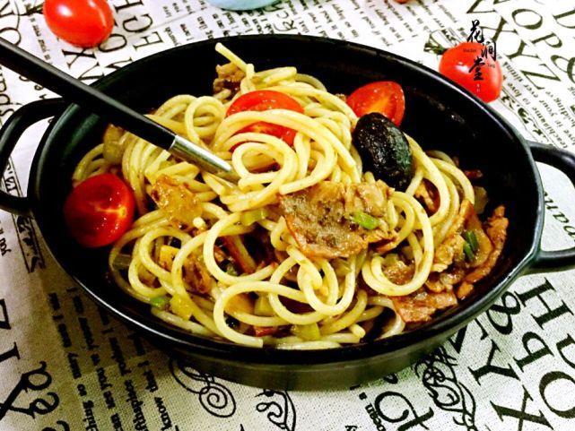 用橄榄菜搭配喷香培根,加入些许小番茄,做出的酱汁醇香可口,拌面条很香,如果是用弹性十足的意面来翻拌,更是好吃。我曾经在一家知名餐厅吃过这样的做法,很受食客的欢迎。