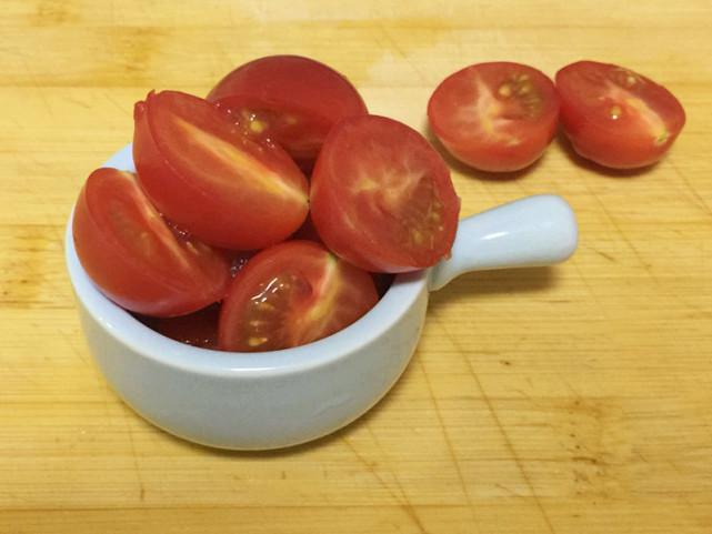 橄榄菜2大勺;培根4条;芹菜半根;小番茄8个