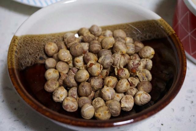 3、鹰嘴豆要想香酥脆口,有个加工的小窍门:买来的鹰嘴豆,先在水里浸泡3小时以上,隔夜的话也没问题。接着沥干水分放入冰箱冷冻半小时。