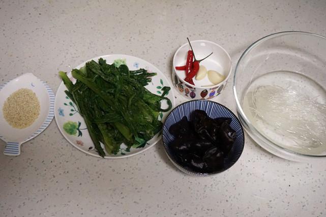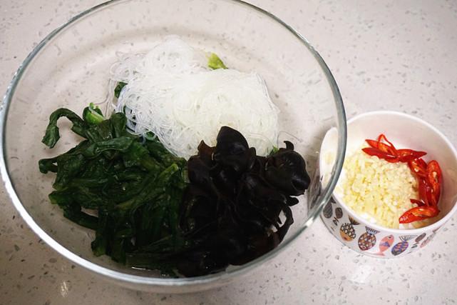 木耳冷水泡发,洗净切小块,沸水焯1分钟备用。蒜瓣切末,能吃辣的放几个小米椒,鲜辣的口感最好。
