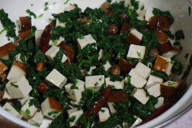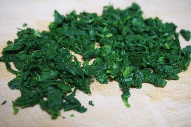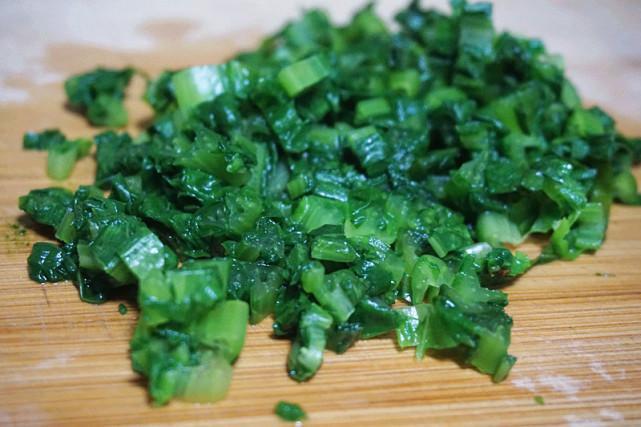 1、 莴苣叶洗净过沸水焯半分钟,沥干水分切碎。