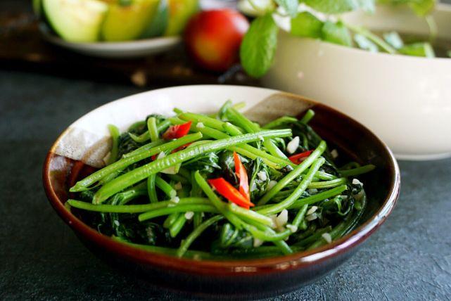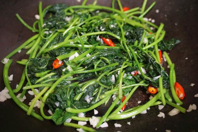 2、而清炒的时候,放入蒜蓉,更增清香口感。