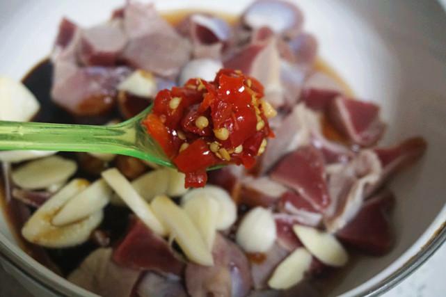 烤鸡胗加两勺剁辣椒,会有鲜辣的口感在里面,还不影响鸡胗的脆爽。