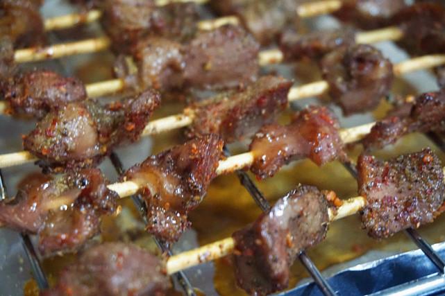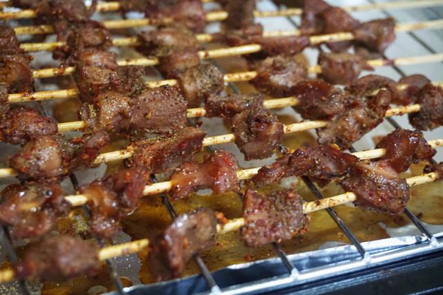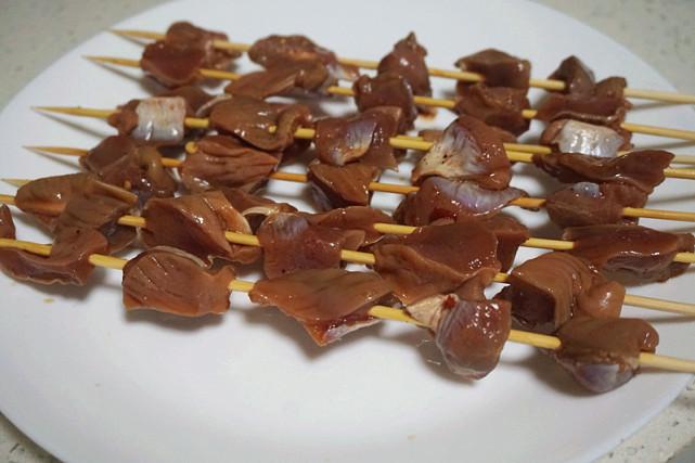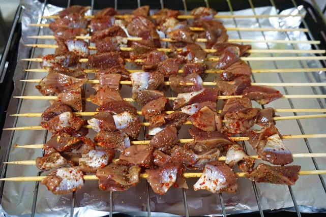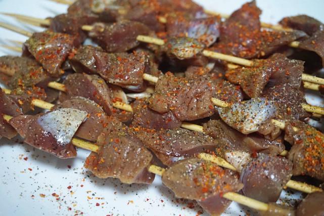 鸡胗不像羊肉串,本身油脂少,所以烤好了并不油亮亮的,但可以看到,逼出来的汤汁也不少,这样鸡胗烤出来醇香又爽脆。