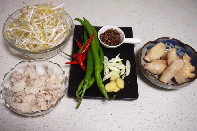 3、准备好需要的食材:择适量的豆芽,洗净。酸姜没有的话,用酸豆角或者酸菜都可以。