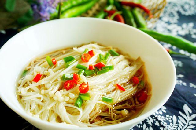 除了涮锅凉拌,金针菇还有种特别鲜美的做法——白灼。做法简单,又能最大程度凸显其鲜爽的口感,这种取自粤菜的烹制方法,多在海鲜、时蔬的烹制时使用。