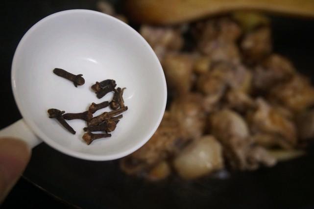 4、倒入丁香,加入啤酒,啤酒的量刚刚没过鸭肉,这个量最为适合。
