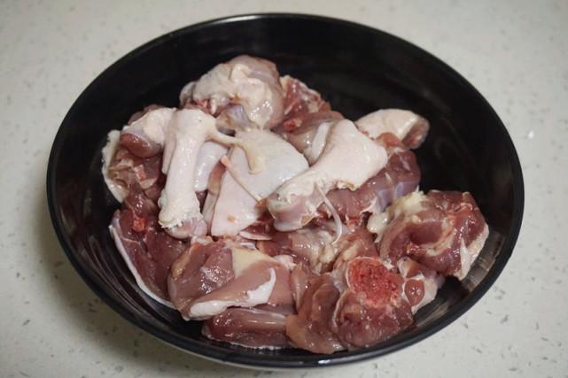 2、鸭肉斩成小段,放入清水中煮沸,去掉浮沫,鸭肉捞出沥干水分。