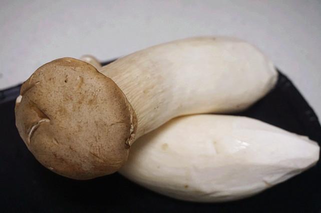 4、坐热油锅,放入适量食用油,烧热后放入切好的杏鲍菇,快火滚油,这一步很重要,杏鲍菇要先炒掉生味,用时半分钟捞出备用。