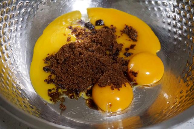 5、蛋白的打发,也是用红糖,红糖40克分3次打发。