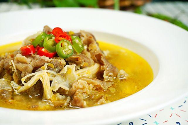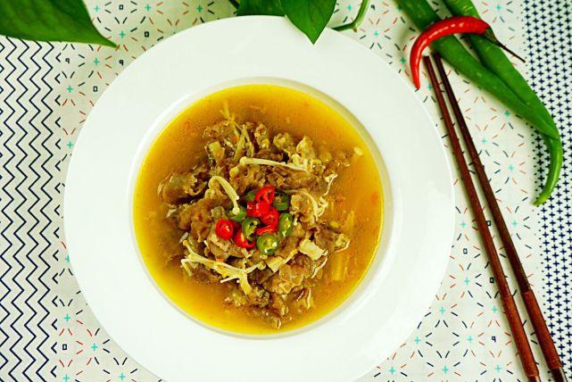 而这其中,色泽金灿灿的海南灯笼椒,用来煲汤最是鲜美。这个在我厨房里静静守在角落里半年的精致小瓶子,盛夏我不敢吃,觉得这么辣,吃完全身都冒火的感觉。待到秋意浓,天微凉,做一道肥牛汤煲时,加入几小勺最适合。酸辣的汤汁,嫩滑的肥牛,热腾腾的吞下肚,必要挖一勺米饭填入口中,这温暖的感觉,似乎一刹那从口暖到脚底。看这汤汁,蛮诱人吧,爱吃辣的同仁们,赶紧来试试喽。