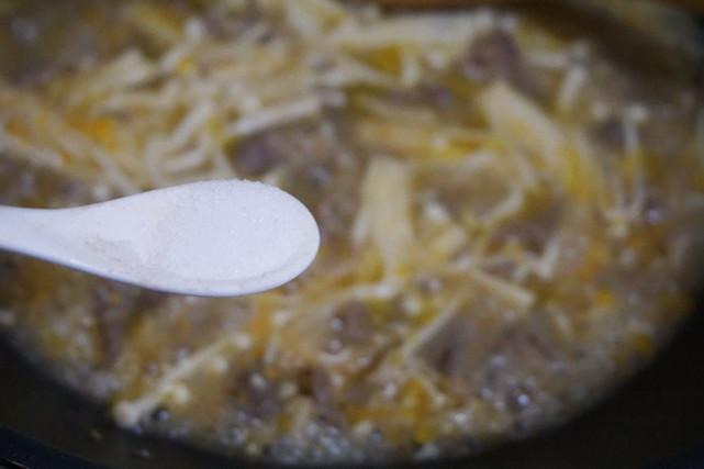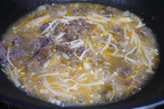 5、倒入金针菇,继续煮2分钟左右。
