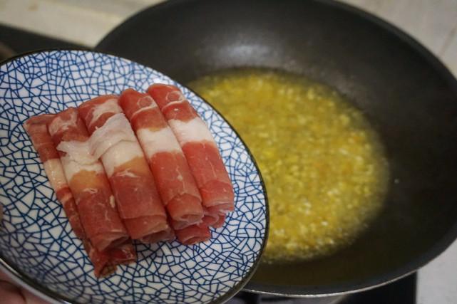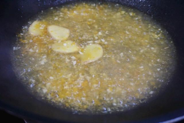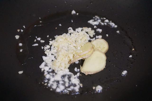 2、锅内放入适量食用油,烧热后先爆香蒜末姜片。