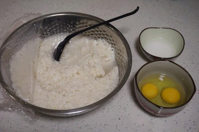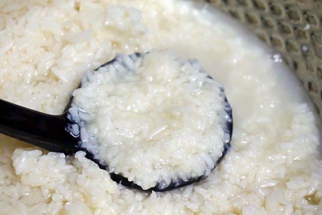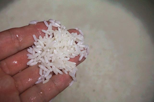 2、待到次日清晨,可以看到糯米很容易碾开,这样的状态就可以了。