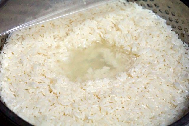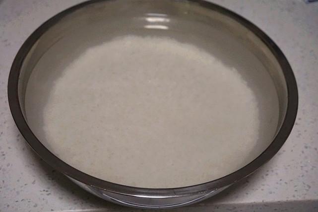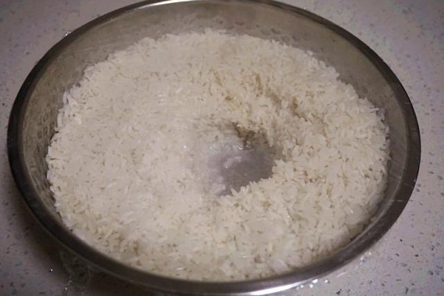糯米淘洗干净后这样浸泡在清水里一晚上。