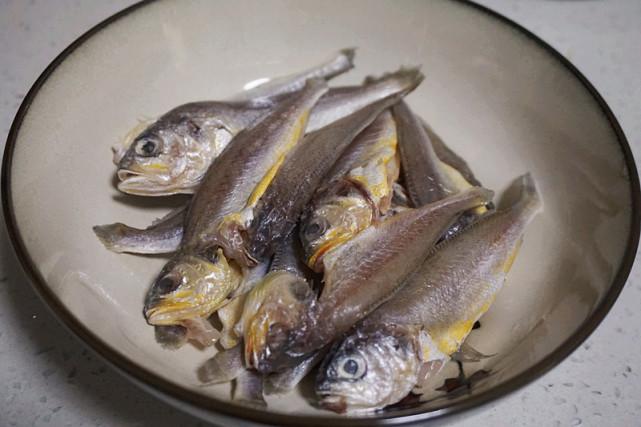 1、小黄鱼清理干净内脏,去掉黑膜,用少许料酒和盐,稍微抓一下,腌制10分钟。