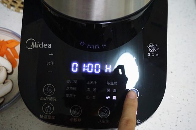 选择研磨键,机器设定的是1分钟,但实际用不了这么久,大概半分钟就可以打的非常细腻了。