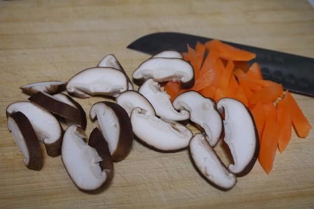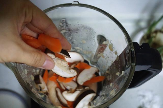 4、接着放入切好的胡萝卜块和香菇片,继续研磨。