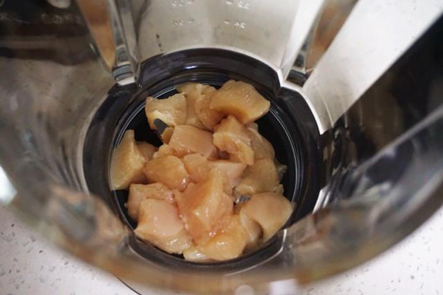 3、鸡胸肉切块,放入破壁机,加入少量清水。