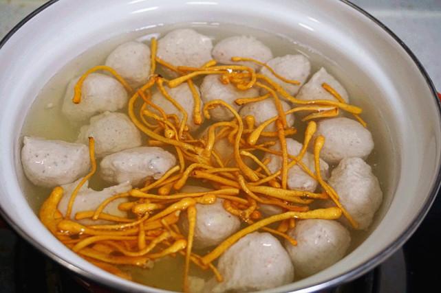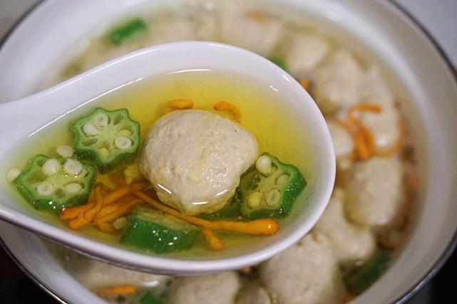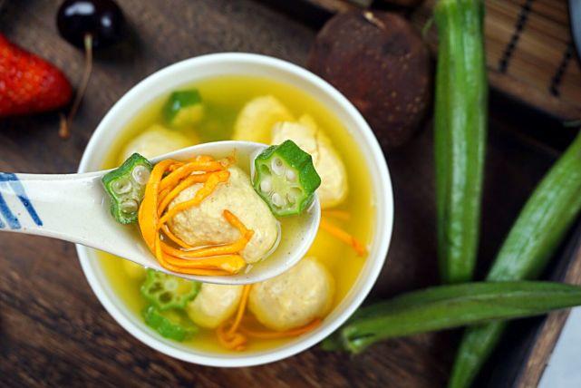 1、准备好需要的食材。虫草花洗净去梗备用,秋葵洗净切片。鸡肉丸里加入香菇和胡萝卜,可以均衡口感,而且都是营养的食材呢。