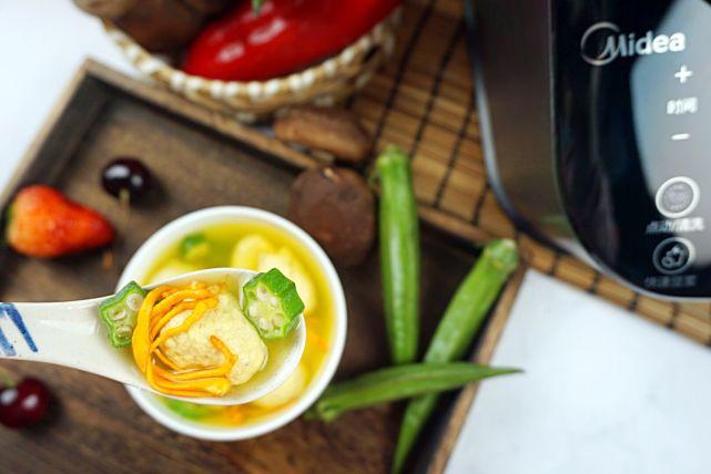 赶上天寒地冻的周末,我先生就想着中午吃的简单营养,有个汤,热乎乎的泡米饭就很香了,于是我就用破壁机打磨了鸡胸肉,制作一道秋葵虫草花鸡肉丸子汤。