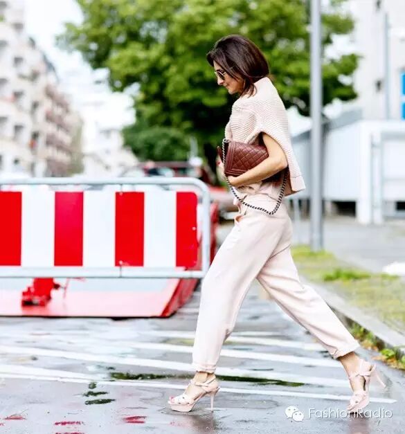 还没有试过从头到脚穿一个颜色?其实这个组合反而不会无聊,因为你可以尝试搭配不同的面料和质地,比如上图,用一件毛衣披在肩膀上,就让整身造型看起来像有趣的合奏。