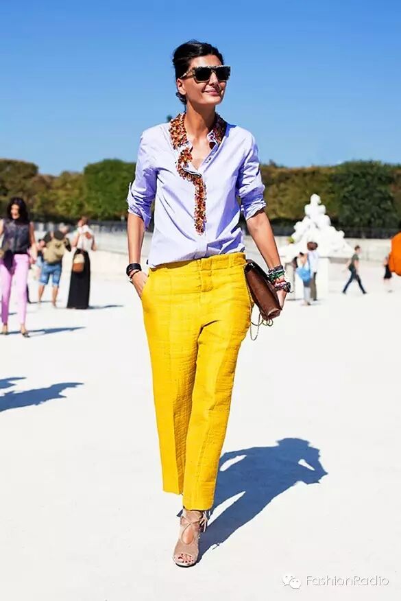 想要在职场中增添一些女性气息,选择一条款式简洁的亮色裤子(或裙子)是一个很好的方法。让你显得青春活力,不那么女强人,同时仍然保持专业化。