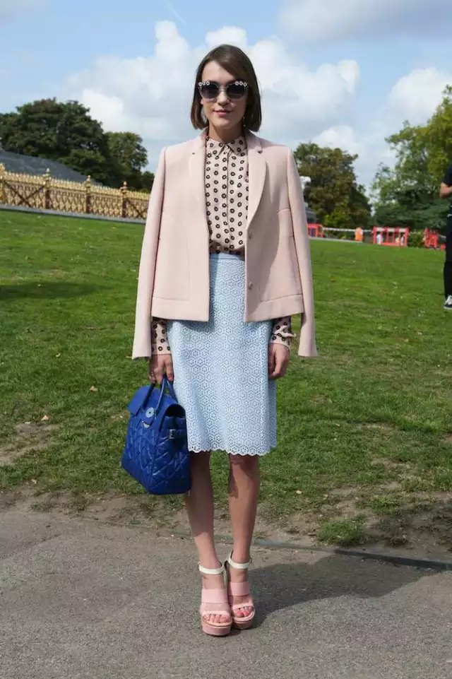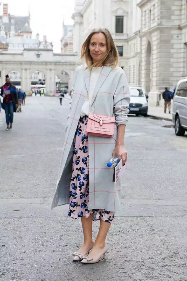 最春天的樱花粉色要如何穿?灰色是最佳搭配!而且如果你注意观察的话,上面两位博主还都加入了一点蓝色作为对比,更加衬托出粉色的娇嫩柔和。