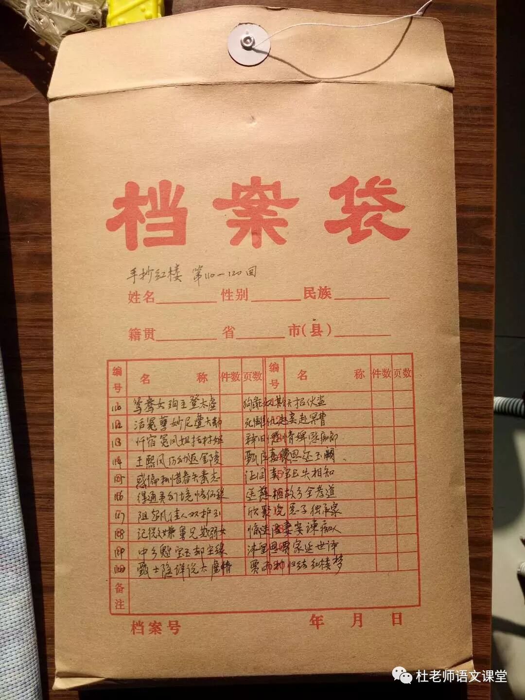 每个档案袋的封面,我都标明了手抄红楼多少回至多少回,并写上了该10回的回目。