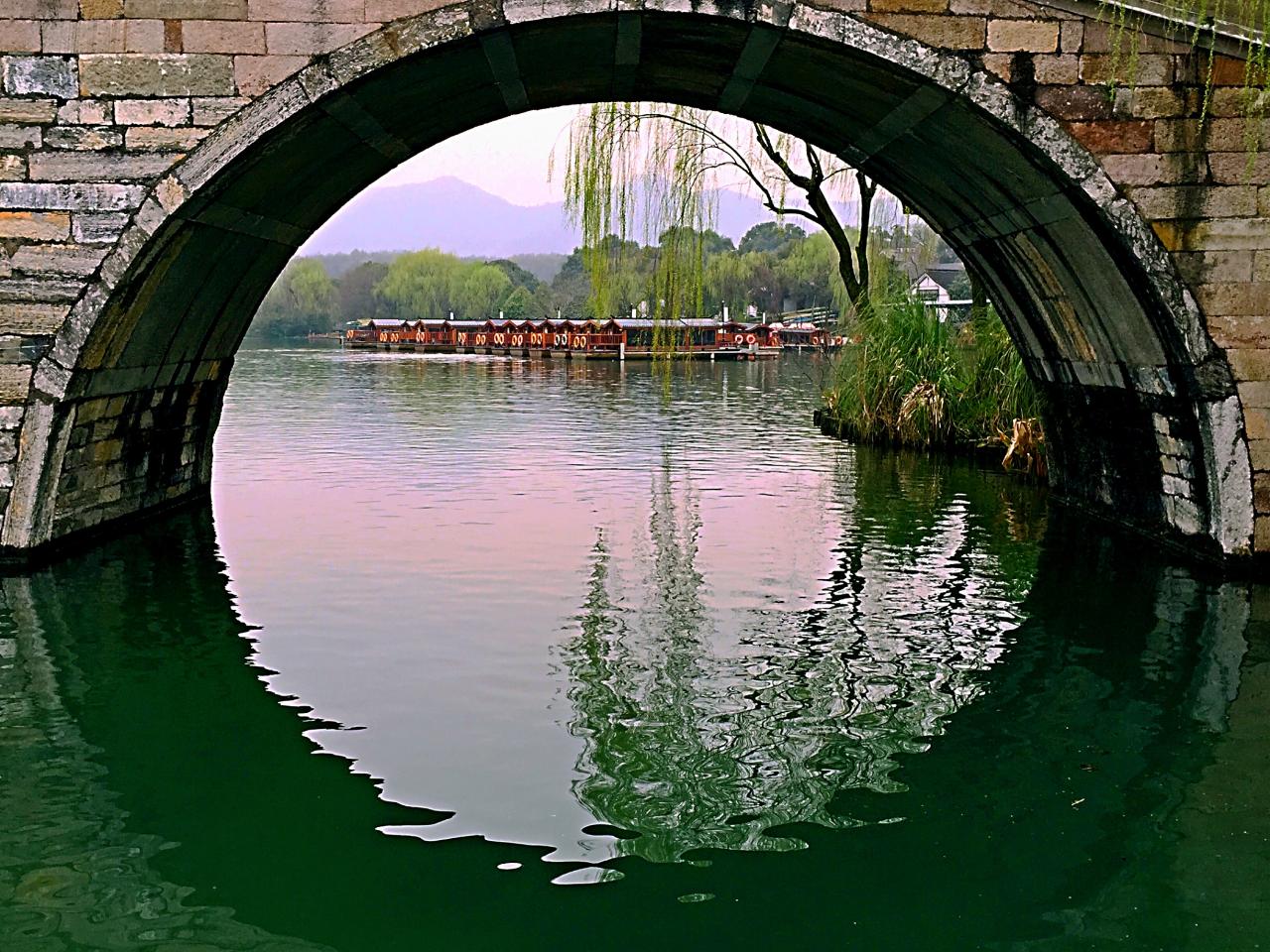 沿湖的柳丝,在微澜的水面漂浮,西湖的故事,在我的眼前一个个闪过。那不是许仙与白娘子在白堤相聚的断桥吗?现已人过事非徒有雷锋塔影空惆怅;游船缓缓滑过,是苏轼举杯吟唱醉西湖的苏堤、还是苏小小望湖楼上弾古铮?摇曳的小船慢慢靠上了茅家埠,这里还有济颠和尚摇着蒲扇、唱着“鞋儿破、帽儿破”的歌声印记吗?其实,这一切早已慢慢地淹没在历史的长河中,只有在春风中寻觅那点点的痕迹。一路感叹、一路惆怅,踏着青青的石板,沿着过去香客进香的痕迹,走进了法云径。