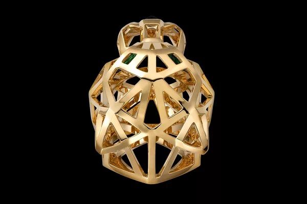 18K黄金戒指,镶嵌沙弗来石、缟玛瑙及黑漆。