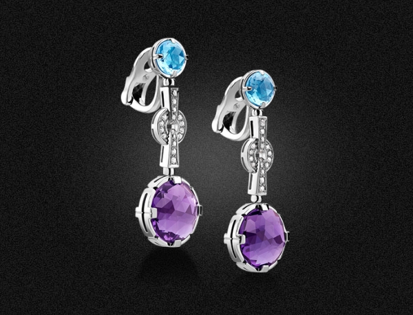 B.Zero1吊坠耳环,18K白金材质,镶嵌紫水晶和蓝色托帕石。长度4.70厘米。http://mmbiz.qpic.cn/mmbiz/osv7xnooomGhhBP8J3wRG93SxXgPDCspzFbwVAY8D7jvCOjNb8eqPIaeCLoH7f2pMEbExQ5JqguCjK1Sia7fQibQ/0?wxfrom=5宝格丽经典之彩宝款(全集)" TITLE="【珠宝知识】