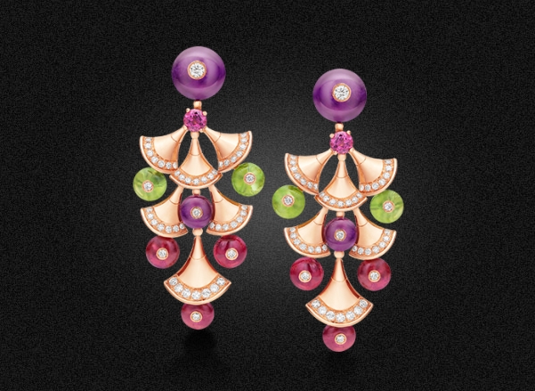 DIVA 18K玫瑰金耳环,饰紫水晶、红碧玺、橄榄石和密镶钻石。http://mmbiz.qpic.cn/mmbiz/osv7xnooomGhhBP8J3wRG93SxXgPDCsp2nVjoSFKQDy7L4gPUX1lQb36LbKpCg5DzliaV73hufvToorbgzTOgCw/0?wxfrom=5宝格丽经典之彩宝款(全集)" TITLE="【珠宝知识】