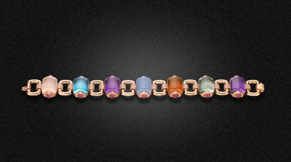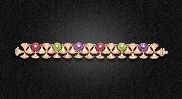 DIVA 18K玫瑰金手链,配彩色宝石和密镶钻石。http://mmbiz.qpic.cn/mmbiz/osv7xnooomGhhBP8J3wRG93SxXgPDCsp3GiceatTia31b8gTd3CaZ2P7ma0sSsmy38owyUkZW02gMhy6bKnqtXqQ/0?wxfrom=5宝格丽经典之彩宝款(全集)" TITLE="【珠宝知识】