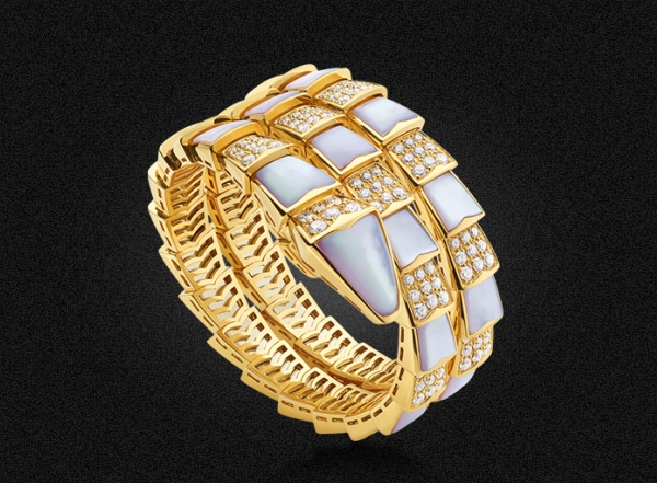Serpenti戒指,18K黄金材质,镶嵌珍珠母贝。http://mmbiz.qpic.cn/mmbiz/osv7xnooomGhhBP8J3wRG93SxXgPDCspW8wA50uHicH3WA86zvvffhLwia0LczO9oVAiajmhm9CWtvBwxhV0HoB6g/0?wxfrom=5宝格丽经典之彩宝款(全集)" TITLE="【珠宝知识】