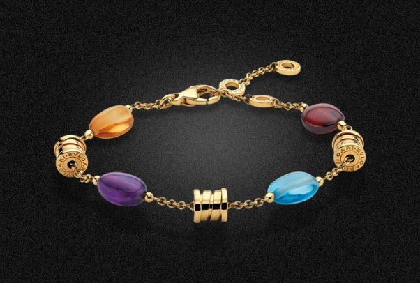 B.Zero1手链,18K黄金材质,镶嵌红色石榴石、紫水晶、蓝色托帕石和黄水晶。长度15-19厘米。http://mmbiz.qpic.cn/mmbiz/osv7xnooomGhhBP8J3wRG93SxXgPDCsp6GsqBJ942mySjFBfe6U71MAKLYDP7UUgsNv0480XFaiaFicia6oq43saw/0?wxfrom=5宝格丽经典之彩宝款(全集)" TITLE="【珠宝知识】