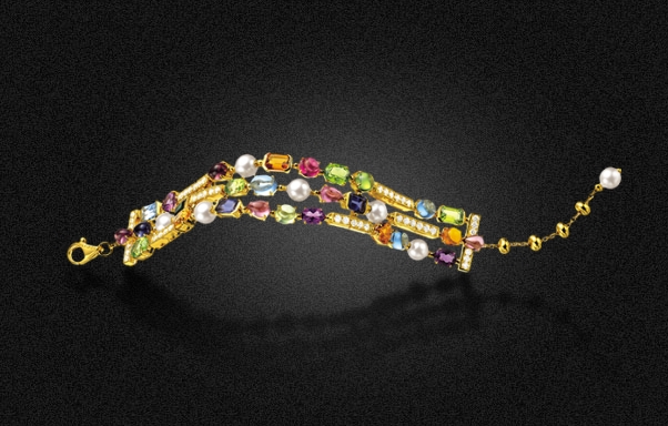Collection三排手镯,18K黄金材质,镶嵌粉红碧玺、绿色碧玺、橄榄石、堇青石、紫水晶、黄水晶、蓝色托帕石和AKOYA养殖珍珠,饰以密镶钻石。长度16.5-19厘米。http://mmbiz.qpic.cn/mmbiz/osv7xnooomGhhBP8J3wRG93SxXgPDCsp85fWiakOICbUq7C7mmauj1GWQ5saicQNQFfia1FgUBiajkMggeOjlcOibKw/0?wxfrom=5宝格丽经典之彩宝款(全集)" TITLE="【珠宝知识】