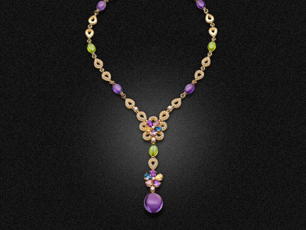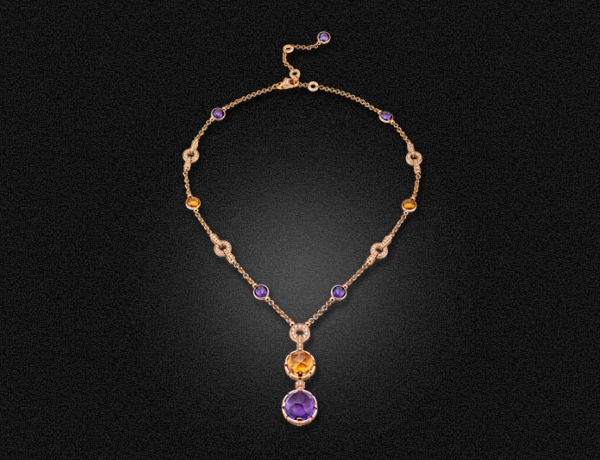 Cocktail项链,18K玫瑰金材质,镶嵌黄水晶和紫水晶,饰以密镶钻石。长度38-42.5厘米。http://mmbiz.qpic.cn/mmbiz/osv7xnooomGhhBP8J3wRG93SxXgPDCspxIQm3v6F6amzBA8NEWoCibvOTRgibkFmcyFG7icyADNTA8ao4s4j49ZOg/0?wxfrom=5宝格丽经典之彩宝款(全集)" TITLE="【珠宝知识】
